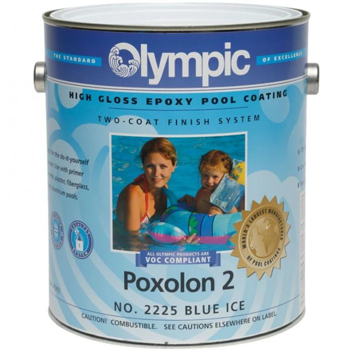 Olympic Poxolon 2 Epoxy Pool Coating is a perfect choice for a new pool. It can be used on concrete, plaster, fiberglass, and metal pools with excellent results.